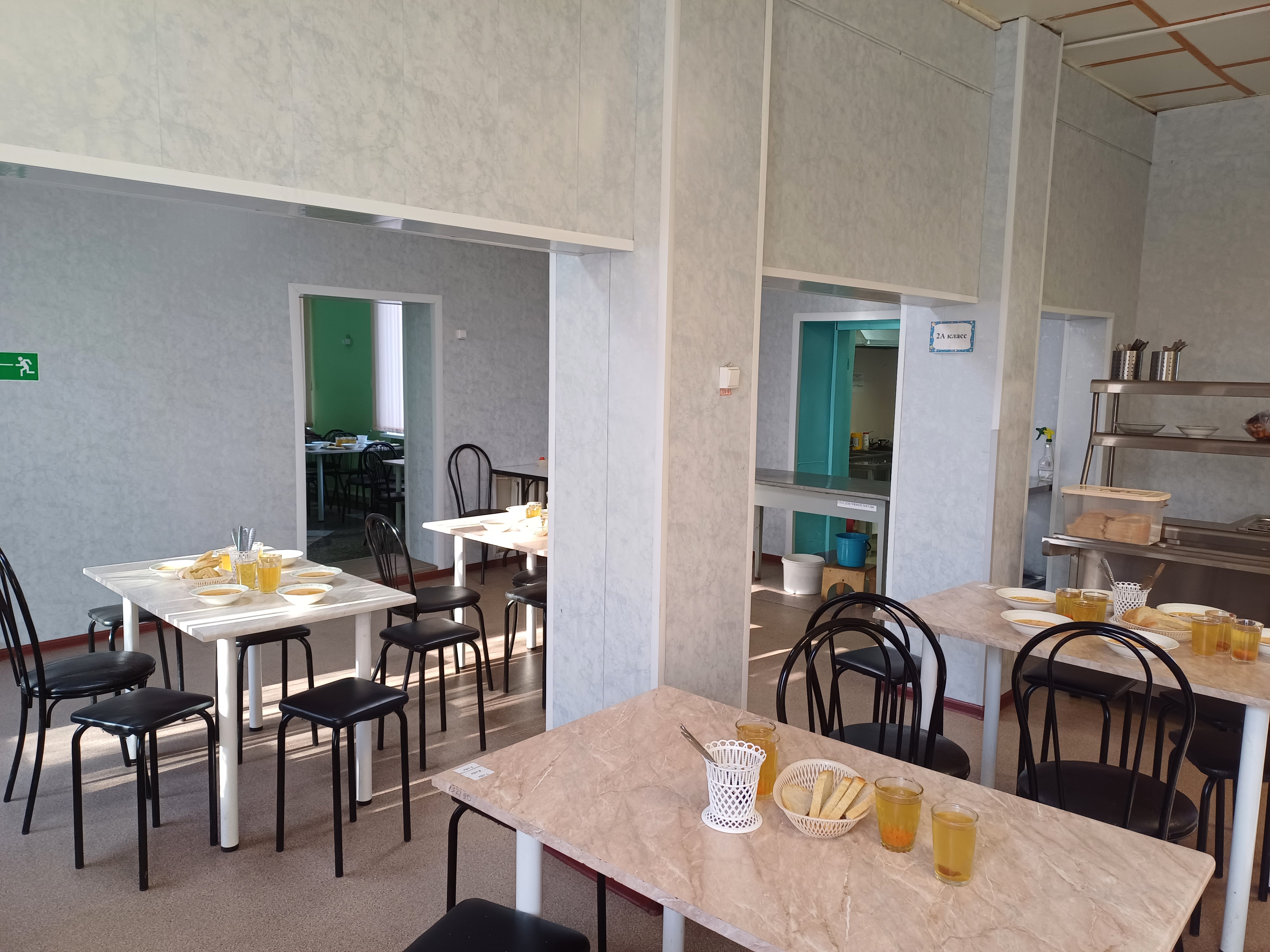 Школьная столовая оснащена современным оборудованием, обеденный зал рассчитан на 80 посадочных мест. Перед обеденным залом установлены 4 раковины для мытья рук. Все обучающиеся обеспечены горячим питанием, в том числе дети-инвалиды и дети с ограниченными возможностями здоровья.
